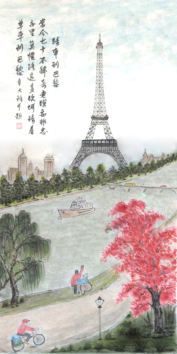 当今七十不稀奇,老骥亦非志千里。莫惧路遥多坎坷,骑着单车到巴黎。