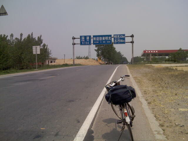 E117:53 N33:08 T9:00 V16.2 日行程147KM 今天晴天,气温最高达32度,流汗较多,水也喝的多。这段路没大山,而上下坡多起来了,有些坡还较陡,比如我的平均车速为16km/h,而最大下坡冲速达46km/h,坡多对体力和车速有些影响。 昨晚旅馆老板娘听说我是自行车旅行。很热情。浏览我的网站到下半夜 ,今天一早起来为我煮鸡蛋,临走时硬往我车篮内塞上两瓶饮料。