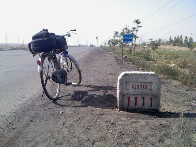 2009年6月23日 离乌海市经乌达县再次骑过黄河(第5次)到河西,离内蒙进 入宁夏,再经惠农县到达银川市, E106.15 N38.28 S1197M T11:02 V15.5 日程171KM 总程2980KM