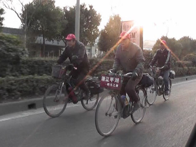 有车友,朋友,还有电视台的共几十人到九亭来接我们。